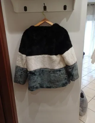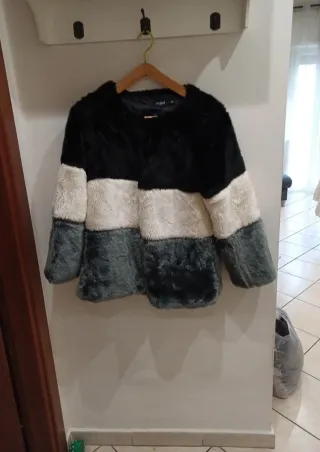 Elegante pelliccia sintetica con un design a blocchi di colore. - Morbida al tatto. - Taglio moderno. Tg 44