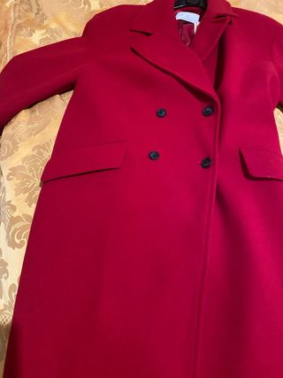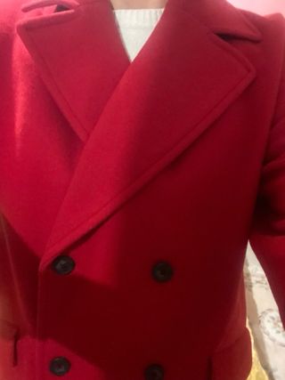 Elegante cappotto rosso con chiusura a doppio petto. - Tessuto di alta qualità. - Due tasche frontali. - Bottoni neri a contrasto. Mai messo ho una 48 di taglia mi e un po largo.