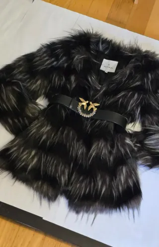 Elegante pellicciotto Kookai XS. - Morbido al tatto. - Design a strati. - colore nero grigio Cintura Pinko non compresa