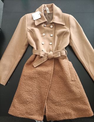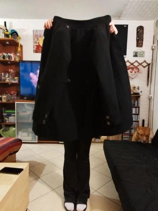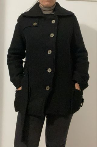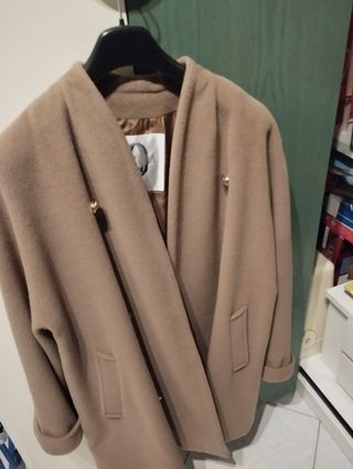 Perfetto. Indossato pochissime volte. Tessuto molto morbido 75% lana e 5% Kashmir. Cinta in vita e coulisse in fondo che lo rende sia sportivo che elegante. Misure in foto con metro da sarta. Non veste molto. Esattamente una taglia 40 da ragazza/donna. Modello molto particolare con bottoni nel collo da poter portare o aperto o chiuso. 🚭 NON fumatori 🐶🐱 No animali in casa
