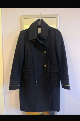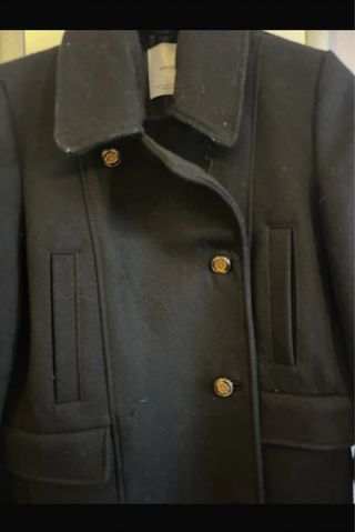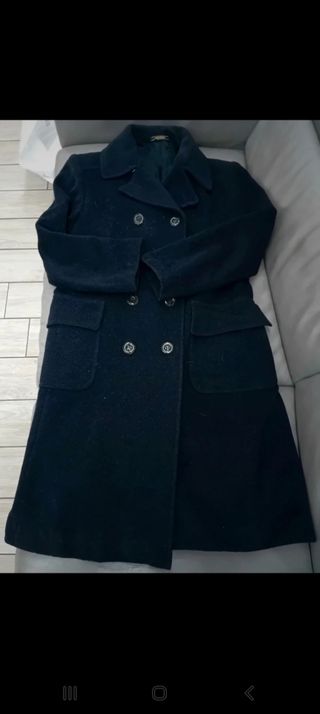 Elegante cappotto in misto lana, perfetto per le giornate più fredde. - Chiusura doppiopetto. - Dettagli dorati sui polsini e bottoni. - Tasche frontali e laterali, aperte solo quelle laterali - Collo ampio. -mancano dei bottoni facilmente sostituibili