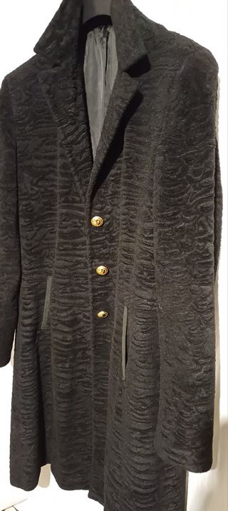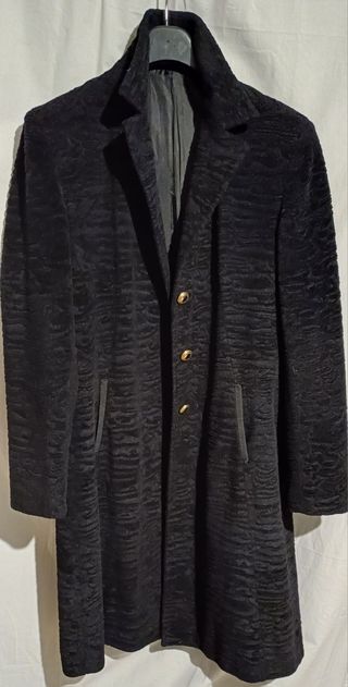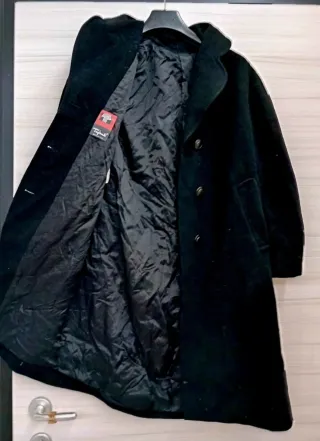 Cappotto foderato nero in vellutino damascato, privo di etichetta (forse sartoriale), tg. M (44/46) Particolari bottoni lavorati e dorati. Buone condizioni Altezza 110cm.ca. Misura spalle 45cm. Prezzo 25€