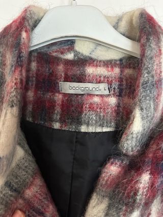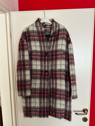 Cappotto lungo con fantasia a quadri. Perfetto per completare un look casual. - Fantasia a quadri rossi, bianchi e neri. - Tasche frontali. - Chiusura con bottoni.