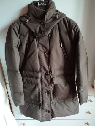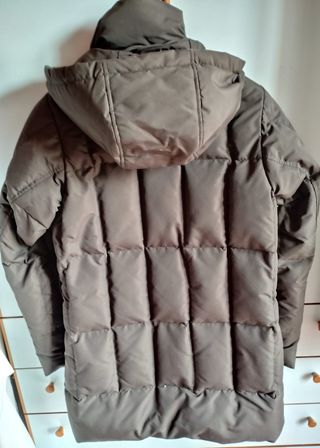Giaccone donna trapuntato Wilker, color verde militare, imbottitura di piuma d'oca al 70% , taglia M, tre tasche interne, quattro esterne, zip di chiusura.l con doppio cursore, cappuccio estraibile, lunghezza cm.80, manica cm. 60. Come nuovo, caldissimo. L'inverno è alle porte. .