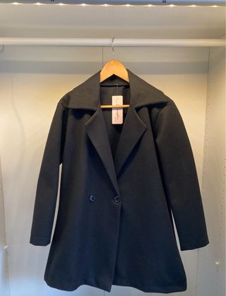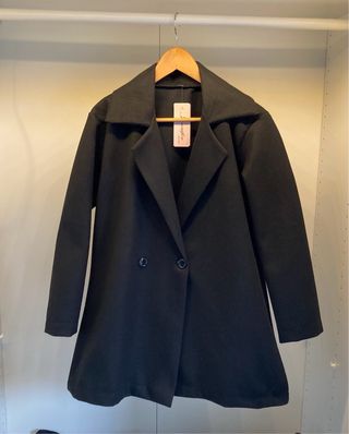 cappotto donna tg XS, marca Shein, nuovo con confezione originale, tessuto 100% poliestere, colore nero, modello sperto senza allacciatura, soprabito donna, molto carino , misure: spalle cm 38, larghezza cm 50, lunghezza cm 110, manica cm 57 ( art armapinobianco1basso) W