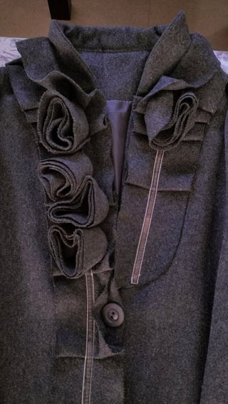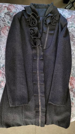 Vendo cappottino in lana grigio scuro taglia M usato. Nel collo presenta come delle rose sempre fatte in lana.