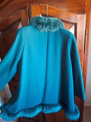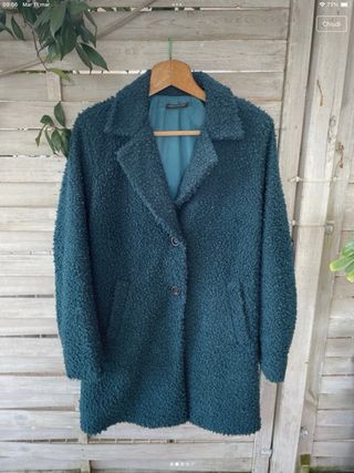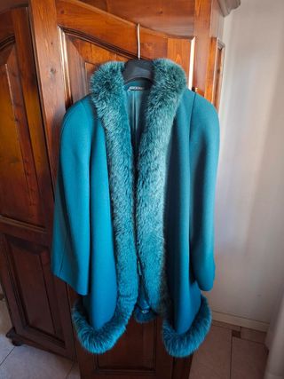 cappotto vintage blu petrolio in pile effetto peluche, con tasche laterali e chiusura con due bottoni. Marca made in italy, taglia XL