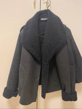 Giaccone in ecopelle con fodera in sherpa.mlto caldo - Collo ampio in sherpa. - Chiusura frontale con bottoni - Polsini e fondo con dettaglio sherpa. - taglio leggermente a campana indossaro poche volte