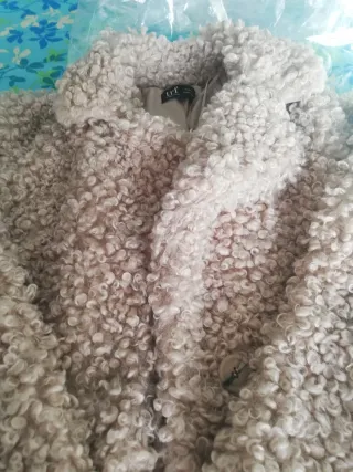 Cappotto Zara in morbido tessuto effetto teddy, colore beige. Nuovissimo, mai indossato. - Tessuto soffice e caldo. - Chiusura con bottoni. - Design moderno e versatile.