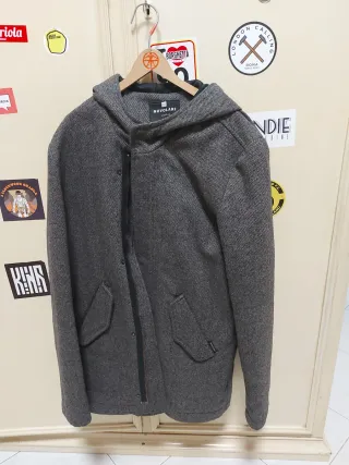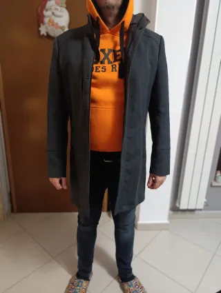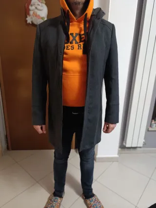 Elegante cappotto invernale da uomo. - Colore grigio - Design moderno - Chiusura con zip e bottoni Misure: Spalla-spalla 48cm Torace 52 cm Spalla-braccio 69 cm