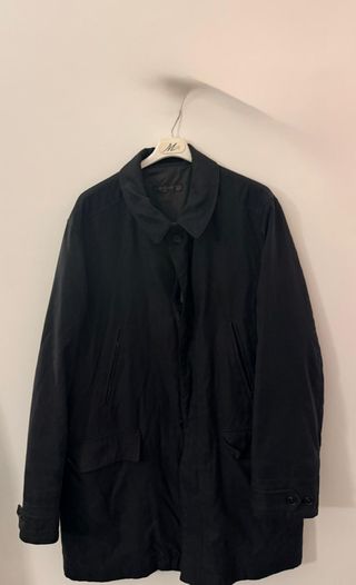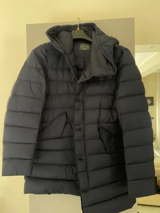 Vendo giaccone da uomo Corneliani ID, colore nero, taglia 50 (Drop 6R). Linea pulita ed elegante, molto versatile (sta bene sia con abbigliamento formale che piu casual). Chiusura frontale con bottoni e pattina coperta, colletto classico. Davanti ha 4 tasche: 2 a filetto e 2 con pattina. Polsini regolabili con doppio bottone. All’interno ci sono 3 tasche totali: 2 tasche interne + 1 tasca dedicata per cellulare (come da etichetta “screened pocket”). Misure: Lunghezza: 90 cm Larghezza (da ascella ad ascella): 52 cm Materiali (da etichetta): Esterno: 69% poliestere, 31% poliammide Interno: 75% lana vergine, 25% poliestere