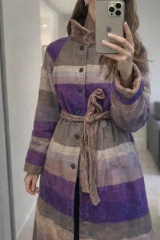 Cappotto vintage double face, un capo unico e versatile. - Realizzato in Italia. - Design a righe colorate.