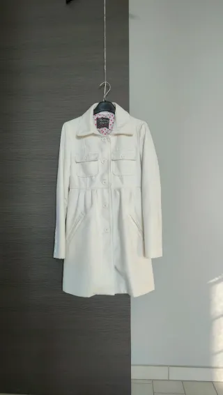 Elegante cappotto Zara color panna, perfetto per ogni occasione. - Taglia S (corrisponde a 36/38 EU). Cappotto Zara, come nuovo. Misure: giro ascelle 106, spalle 58, giro vita 110, manica 48/58, lunghezza 112.