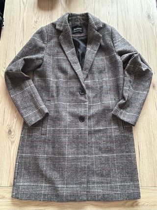 Elegante cappotto Stradivarius con fantasia a quadri. Un capo versatile per completare i tuoi outfit. - Fantasia a quadri. - Chiusura con bottone. - Tasche frontali.