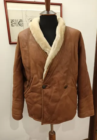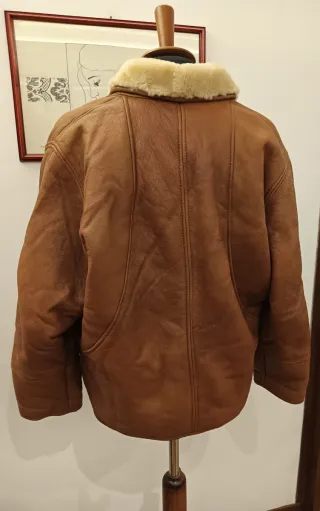 Giacca unisex in shearling autentico con esterno in pelle scamosciata e fodera in lana naturale. Indossata poche volte e ancora in buone condizioni. Presenta un piccolo graffio invisibile sul retro. La foto è lì. Lunghezza: 91 cm/Spalle: 50 cm/Lunghezza del manico: 64 cm/Distanza tra le ascelle: 53 cm/Taglia: 50