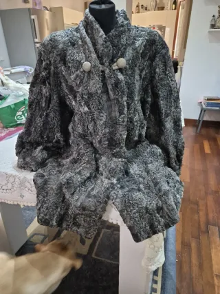 Elegante cappotto in pelliccia di Astrakan. Veste una taglia 46 Arriva al ginocchio - Morbido e voluminoso. - Chiusura con bottoni decorativi.