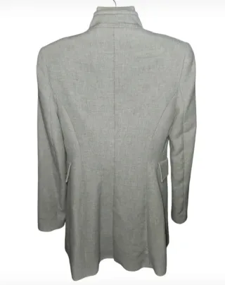 Elegante cappotto Zara di colore grigio. - Design casual. - Collo alto. - Tasche applicate sul davanti. Spalle 38 cm Lunghezza 76 cm Colore Grigio chiaro