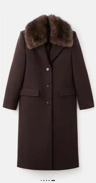 Elegante cappotto invernale da donna, perfetto per le giornate più fredde. - Collo in pelliccia sintetica colore cioccolato, pelliccia staccabile - Chiusura con bottoni. - Tasche frontali. - Lunghezza al ginocchio.