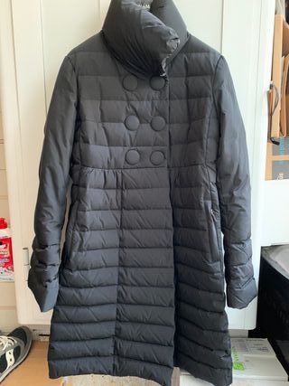 Elegante piumino Max Mara da donna, perfetto per le giornate più fredde. - Design trapuntato. - Collo alto avvolgente. - Chiusura doppiopetto con bottoni. - Tasche laterali con zip.