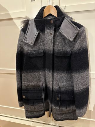 Elegante cappotto Zara di colore grigio. - Tessuto morbido al tatto. - Chiusura con bottoni. - Tasche laterali. - Fodera interna nera.