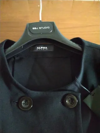 Nuovo con cartellino, nero, trama pesante, chiusura doppio petto, due tasche, tg 44, 65% viscosa e resto nylon ed elastane, morbido ed elegante Misure in cm Spalle 38 Manica 62 Ascelle 52 Vita 52 Lunghezza 99