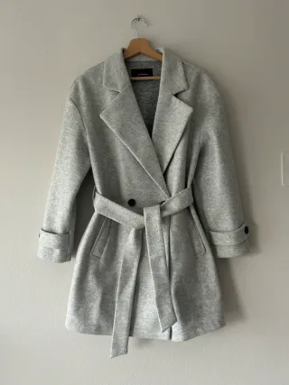 Cappotto grigio con cintura, perfetto per la mezza stagione, Indossato una volta , taglia S ma viste grande - Tessuto mélange. - Chiusura doppiopetto. - Cintura in vita. - Tasche laterali. - Polsini con bottone.
