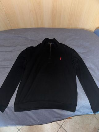 Felpa girocollo Ralph Lauren con zip. - Logo del cavallino rosso ricamato sul petto. - Collo alto con zip. - Polsini