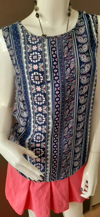 Canotta etnica fantasia blu e rosa taglia XS