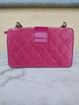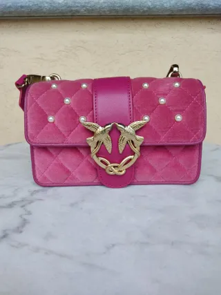 Borsa a mano Pinko in velluto rosa trapuntato, impreziosita da perle. Con tagliando di autenticità
