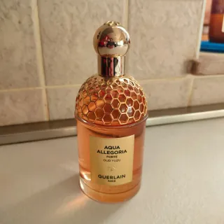 Profumo da donna Aqua Allegoria Oud Yuzu di Guerlain. - Fragranza floreale e agrumata. - Note di oud e yuzu. - Flacone elegante con dettagli dorati.