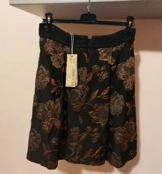Elegante gonna nera con una trama di fiori in oro. - Tessuto con lavorazione jacquard. - Vita elasticizzata. - Design a fiori.