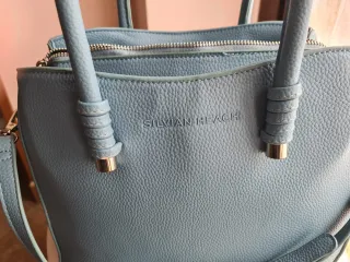 Elegante borsa Silvian Heach azzurra. - Manici superiori - Tracolla regolabile e removibile - Chiusura con zip - Interno leggermente scucito ( visibile in foto).
