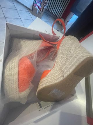 Scarpe con zeppa color corallo, mai utilizzate