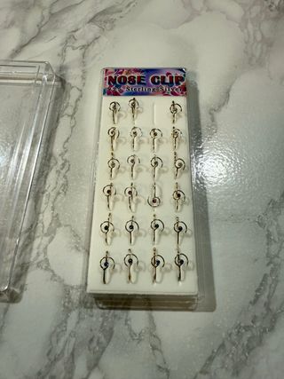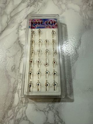 Set di 24 clip per il naso in argento sterling 925. - Design elegante e moderno. - Ogni clip è impreziosita da una piccola pietra colorata (blu o rossa). - Perfette per chi desidera un accessorio distintivo senza piercing.