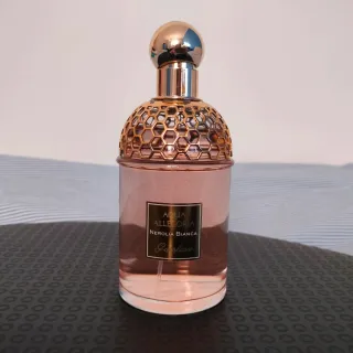 Eau de toilette Guerlain Aqua Allegoria Nerolia Bianca. - Fragranza floreale e agrumata. - Note di neroli e fiori d'arancio. - Bottiglia elegante con dettagli dorati.