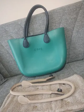 Borsa O bag in materiale effetto pelle, con manici neri. - Colore principale verde acqua. - Manici in ecopelle nera. - Logo O bag impresso sul fronte.