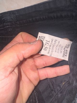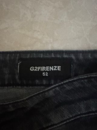 Jeans da uomo in tessuto misto. - Etichetta interna con scritta M 53. - Chiusura con bottone e zip. - Tasca laterale con zip.