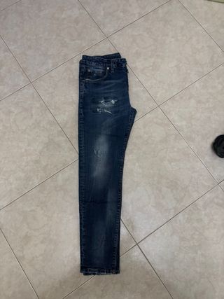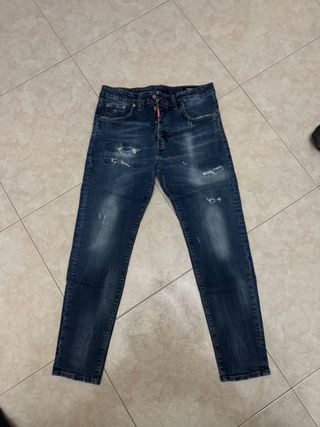 Jeans da uomo dal look grintoso e moderno. - Vestibilità regular. - Dettagli strappati e macchie di vernice. - Chiusura con zip e bottone. - Tasche frontali e posteriori.
