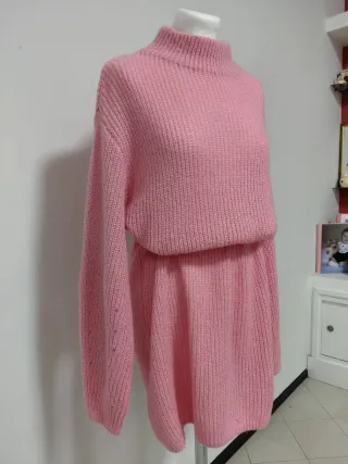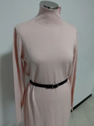 Vestito in lana lavorata a maglia, con collo alto e cintura in vita. - Maniche lunghe. - Lunghezza al ginocchio. - Tessuto morbido e caldo.