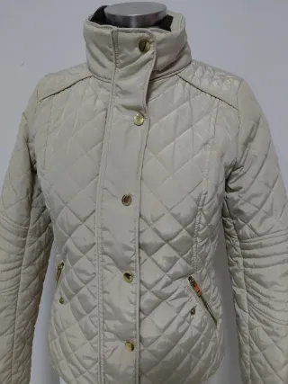 Elegante giubbino trapuntato. - Collo alto con chiusura a bottone. - Chiusura frontale con bottoni. - Tasche laterali con zip dorate. - Dettagli trapuntati a rombi.