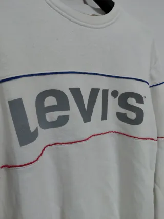 Felpa girocollo Levi's in colore bianco, con logo a contrasto sul petto. - Logo Levi's grigio. - Dettagli a righe blu e rosse. - Polsini e fondo a costine.