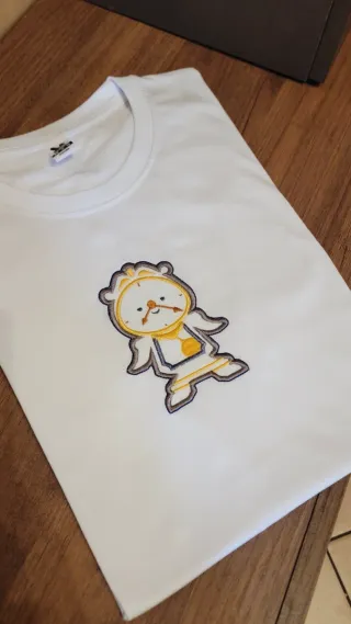 Maglietta bianca con ricamo di Tockins. Unisex - Ricamo color oro e bianco. - Design unico e divertente.