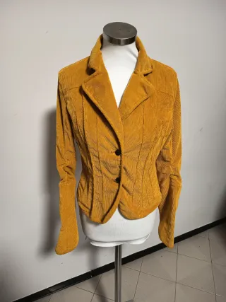 Elegante giacca da donna in velluto a coste. - Colore giallo ocra. - Chiusura con due bottoni. - Maniche lunghe. - Design sagomato.