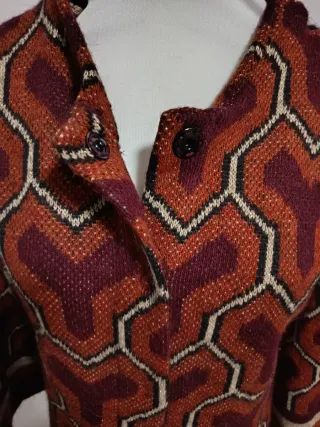 Vestitino con fantasia geometrica. Presenta un collo alto e chiusura con bottone. - Fantasia geometrica - Collo alto - Chiusura con bottone