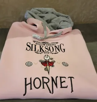 Felpa con cappuccio ispirata al videogioco Hollow Knight: Silksong, con il personaggio di Hornet. - Design ricamato. - Cappuccio con laccetti.