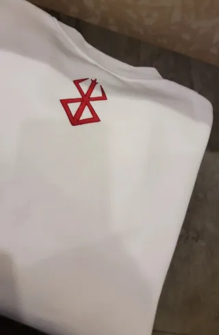 Felpa con un design ispirato a Berserk. - Disegno ricamato del protagonista. - Simbolo del marchio del sacrificio presente. - Dettagli rossi che richiamano elementi grafici.
