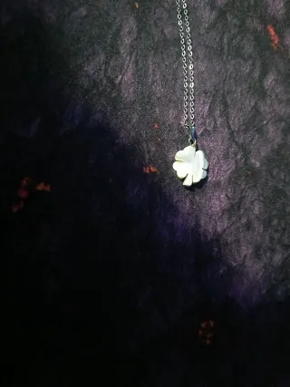 Elegante catena in acciaio con un ciondolo in madreperla. - Materiale: Acciaio e madreperla. - Design: Ciondolo a forma di fiore.