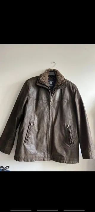 Elegante giubbotto da uomo in pelle marrone, con un caldo colletto in pelliccia. - Materiale: Pelle - Dettagli: Zip frontale, tasche con zip laterali - Colletto: Pelliccia sintetica