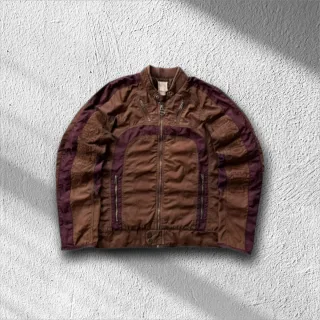 Giacca vintage Diesel in un'originale combinazione di colori marrone e viola. Un capo unico per uno stile distintivo. - Design con pannelli a contrasto. - Zip frontale. - Tasche con zip laterali. - Collo alto a costine.