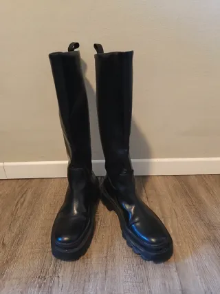 Botas altas de color negro de Mango con suela track. Muy poco usadas. Talla 38. Precio en tienda 79€